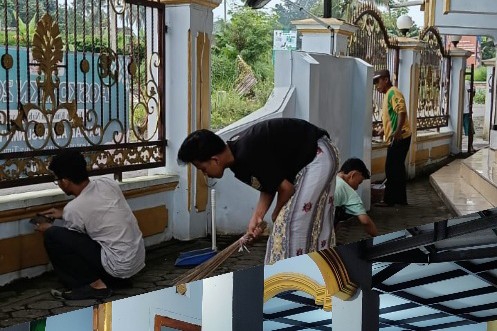 Keesokan paginya, kegiatan dilanjutkan di masjid. Selain membersihkan bagian dalam masjid, para mahasantri dan warga juga membersihkan halaman, mencabut rumput liar, serta menata kembali perlengkapan ibadah. Beberapa mahasantri turut membantu mengecat pagar dan bagian luar masjid agar terlihat lebih rapi dan bersih menjelang pelaksanaan salat Idulfitri.