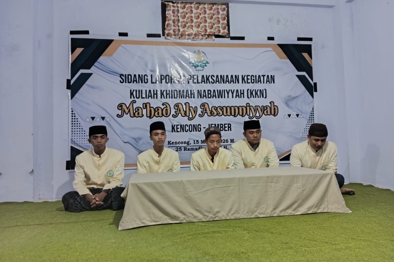 Jember – Ma’had Aly Assunniyyah Kencong Jember menggelar sidang laporan kegiatan Kuliah Khidmah Nabawiyah (KKN) pada Minggu (15/3/2026). Kegiatan yang berlangsung di aula Ma’had Aly Assunniyyah ini menjadi puncak dari rangkaian pengabdian para mahasantri kepada masyarakat.